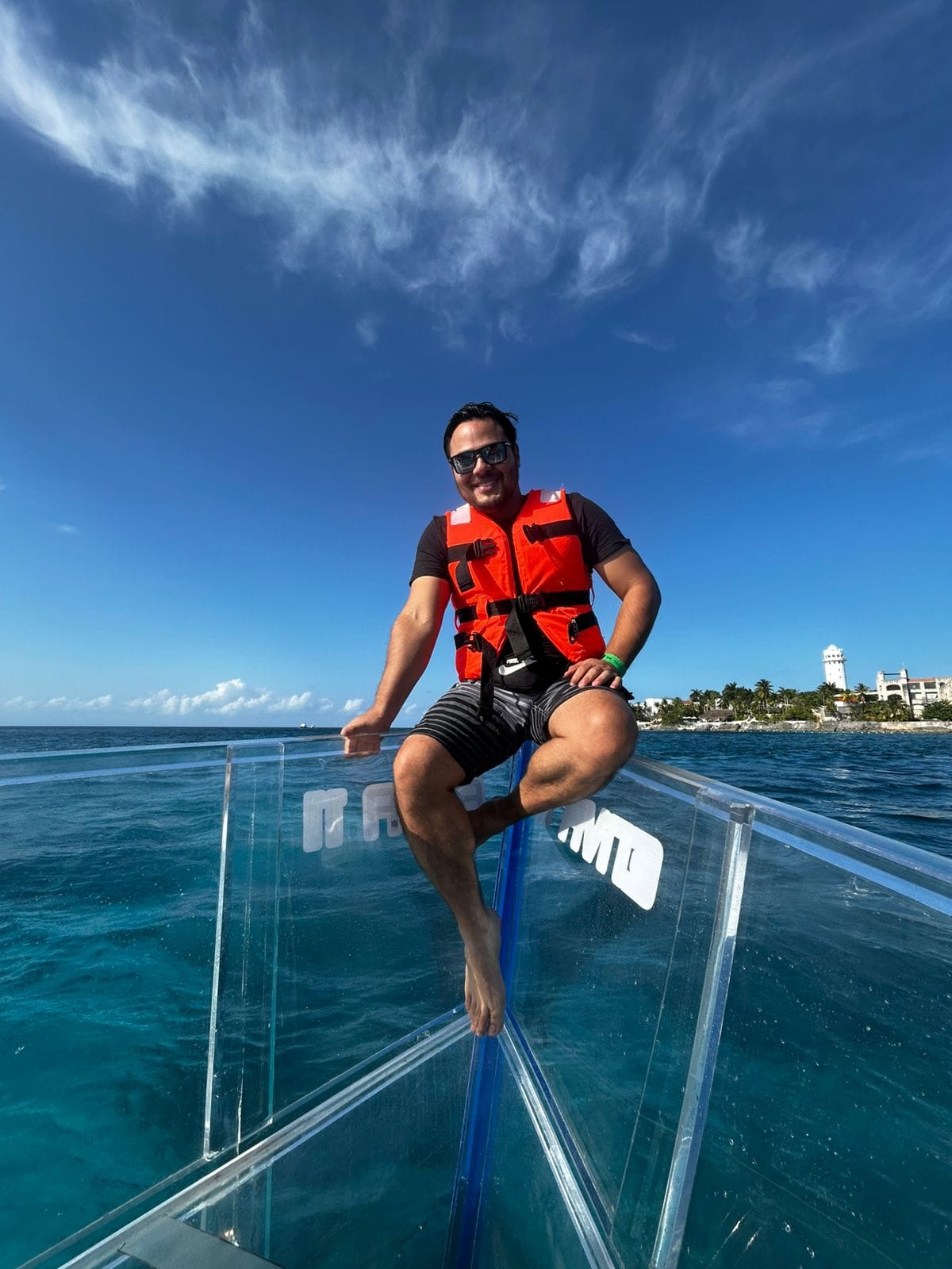 Vive una experiencia única en Cozumel a bordo de una embarcación transparente, donde podrás admirar la vida marina bajo tus pies mientras navegas por el Caribe. Disfruta un recorrido guiado por capitán y guía bilingüe, visitando un barco hundido, el monumento al buzo y un arrecife. Incluye equipo de snorkel, 2 bebidas por persona y grupos reducidos para una experiencia más cómoda y personalizada.